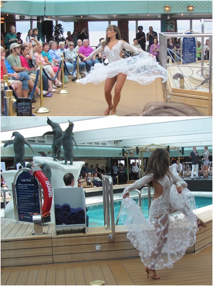 There was a fashion show around the pool of costumes from past DWTS shows.